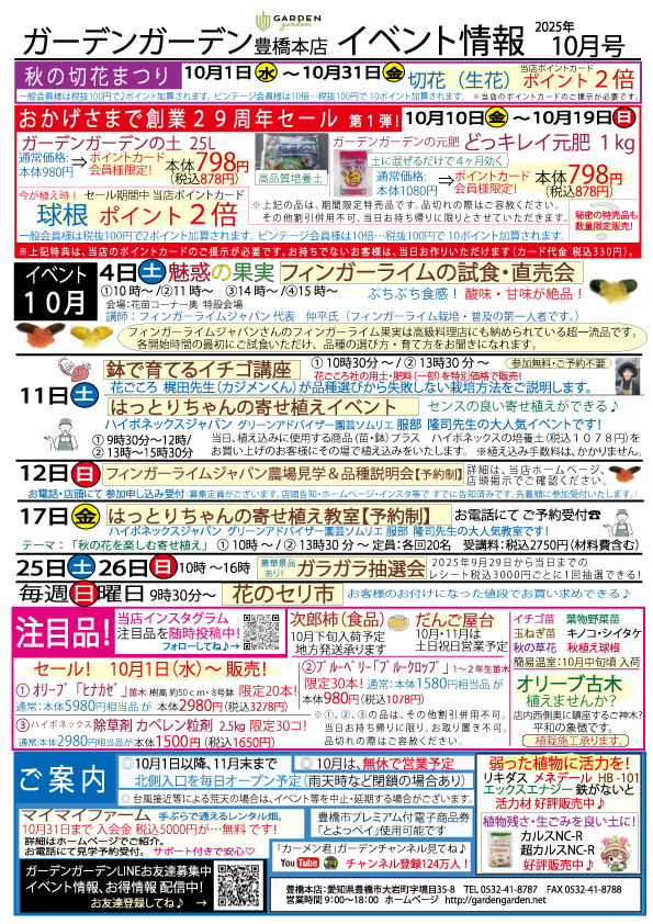 🌼 ガーデンガーデン豊橋本店 イベント情報【2025年10月号】