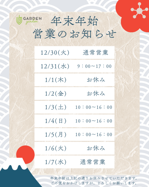 本年も1年間、ガーデンガーデンをご愛顧いただき誠にありがとうございました。