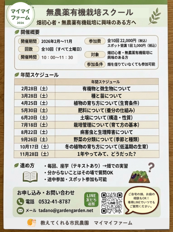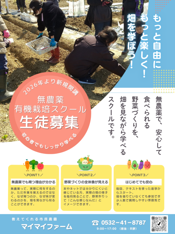無農薬有機栽培スクールのご案内【マイマイファーム】【市民農園】
