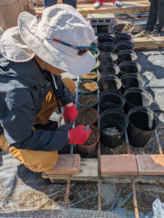 今回は、畑だけでなくポットや鉢での育苗方法も学びました。