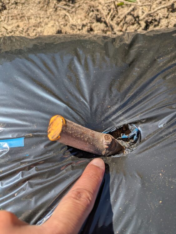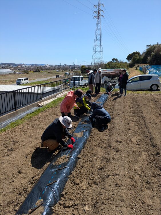 場所を移動して、マルチを張った新しい圃場へ向かいます。マルチを張ることで、