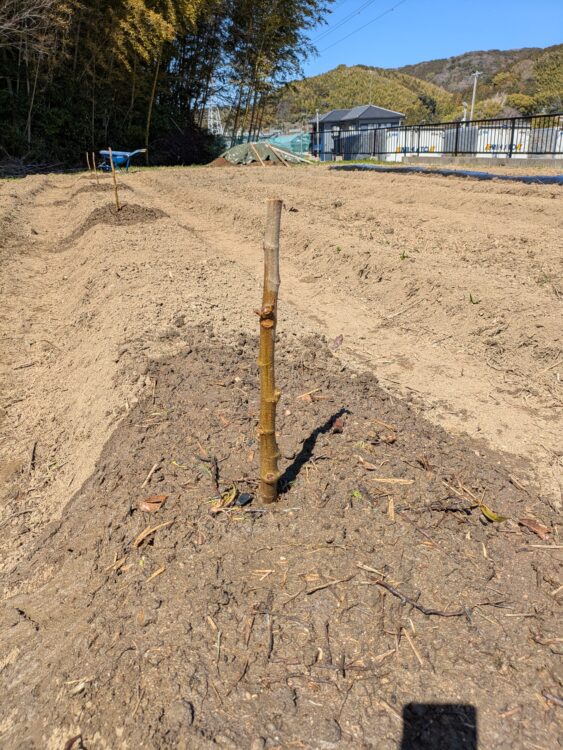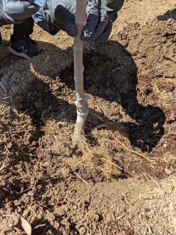 をしっかりそろえること。ここがずれると、その後の生育に差が出やすくなります。最初の植え方が、その後の樹の育ち方を左右します。
